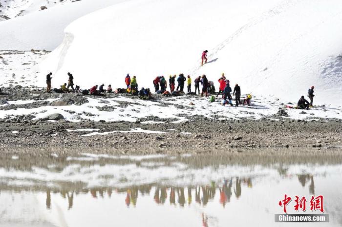 資料圖為登山愛好者在廓瓊崗日冰川進行冰雪訓練。 中新社記者 貢嘎來松 攝