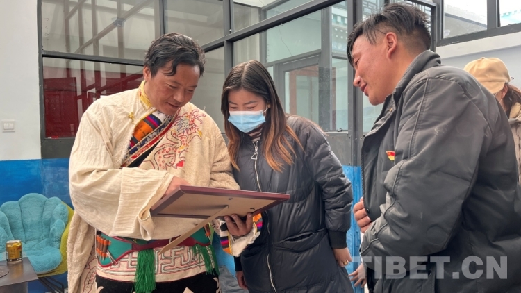 來到送“書法”現場,書法家們早早地來到活動現場,他們準備筆墨、鋪開紙張,為現場群眾書寫藏、漢文新年對聯,“?!弊?、“吉祥如意”、“扎西德勒”等寓意美好的祝福。書法家協會副主席祖牛拉巴次仁說:“從春節開始,我們書法家們去學校、社區、搬遷安置點等地,書寫了超過1萬件的書法作品。這些作品深受大家的喜愛,我們后續也會繼續開展送‘書法’公益活動”?,F場群眾聚集在送“書法”現場,“西熱措姆”“張文青”“索朗旺青”“朗嘎達瓦”……孩子們爭先恐后請書法家把自己的名字寫在紅紙上?!斑@是我的名字,我爸是西寧人,我媽是那曲的,我們是從那曲安多縣搬遷過來的,我現在在森布日幸福中學上初三,將來要考那曲高級中學”張文青拿著書家贈給她的“名字”用流利的那曲話對記者說。