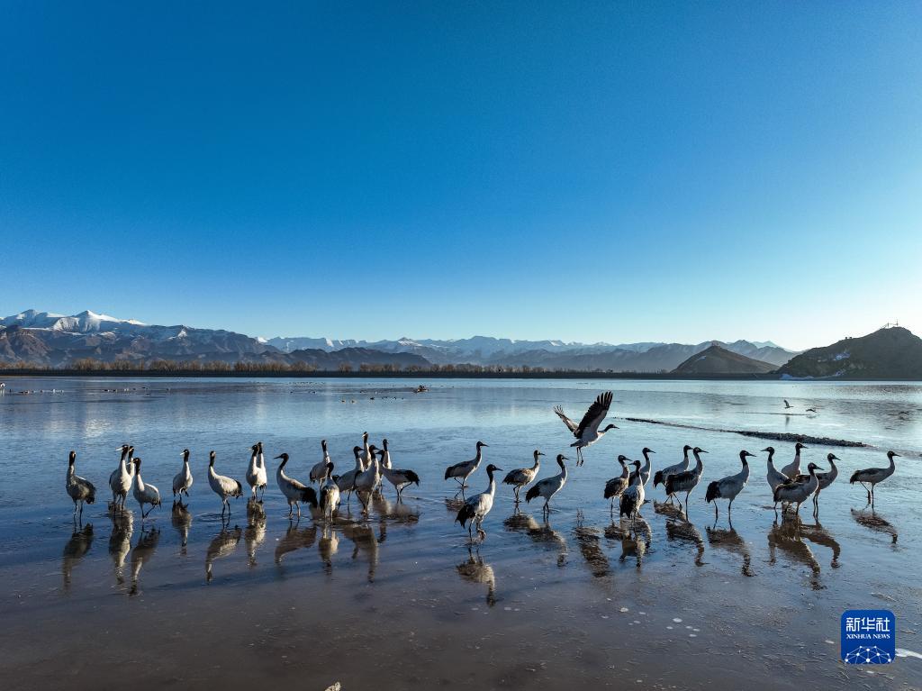 近日,西藏拉薩市各區(qū)縣迎來降雪。群山被白雪覆蓋,高原壯麗唯美。黑頸鶴、斑頭雁等翩躚起舞,拉薩河谷生機(jī)盎然。