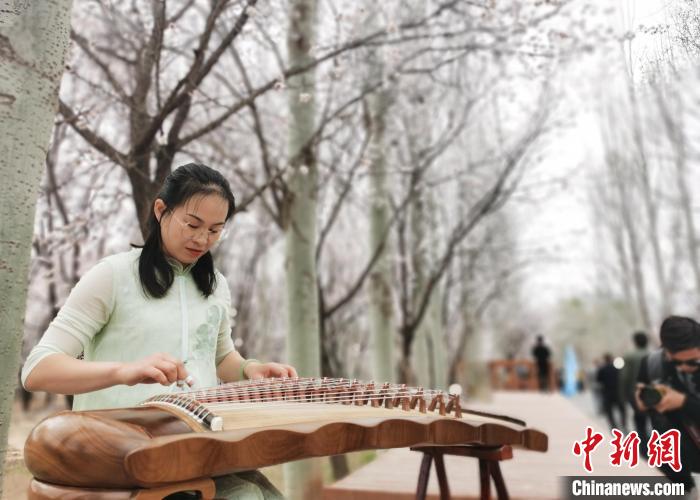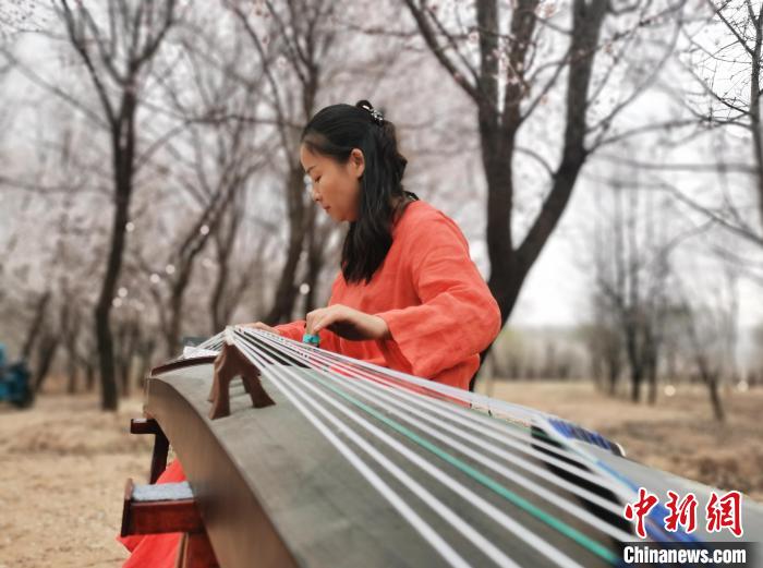 來自青海西寧的古力在杏花林撫琴,“我特意來到這邊,在杏花林彈古箏,畫面很美。花間彈琴本身是一種享受,希望也能感染踏青賞花的游客?!?/p>