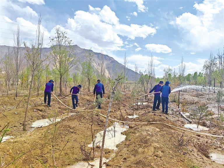 近日,西藏森林消防總隊訓(xùn)練大隊組織消防指戰(zhàn)員,前往拉薩市曲水縣才納鄉(xiāng)植樹示范林區(qū),開展示范林區(qū)綠植的澆灌工作,確保種植的苗木健康成長,綠化成果不受損失。據(jù)悉,今年春季,該大隊積極響應(yīng)西藏自治區(qū)“提質(zhì)增綠行動”會議精神,在植樹示范林區(qū)種植新樹苗3000余株,為拉薩再添新綠。
