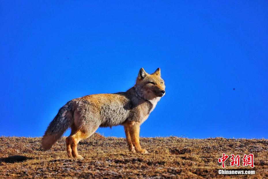 青海雜多三只藏狐曬太陽 表情神似復制粘貼