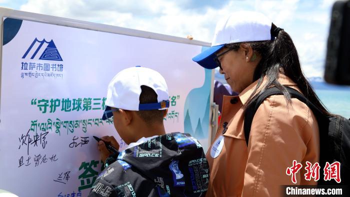 圖為青少年在公益環保簽名活動上簽名。拉薩市圖書館供圖
