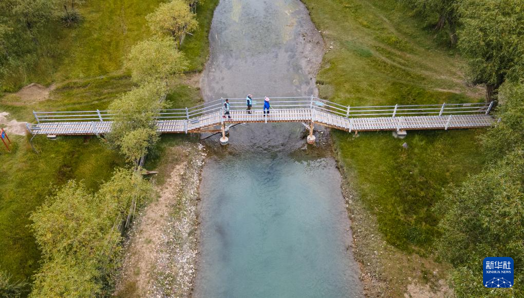 雅尼國家濕地公園管護員在巡護途中小憩(無人機照片,9月8日攝)。新華社發(丁增尼達 攝)