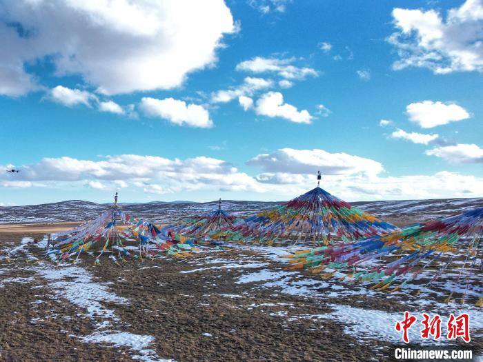 圖為青海省玉樹州曲麻萊縣麻多鄉約古宗列盆地內的經幡。 劉洋 攝