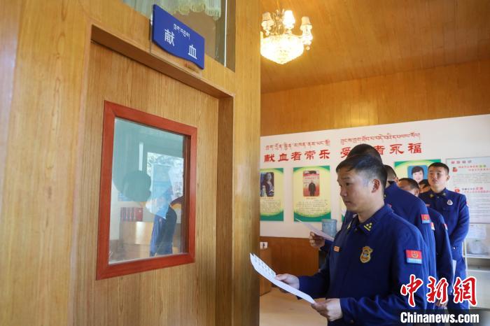 圖為西藏林芝森林消防進行獻血。王澤棟 攝