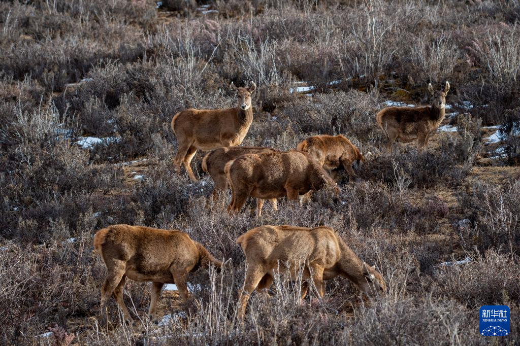 西藏山南市桑日西藏馬鹿縣級自然保護區內的西藏馬鹿(1月14日攝)。新華社記者 旦增尼瑪曲珠 攝