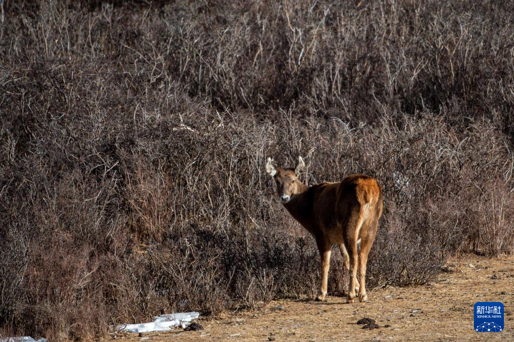 西藏山南市桑日西藏馬鹿縣級自然保護區內的西藏馬鹿(1月14日攝)。新華社記者 田金文 攝