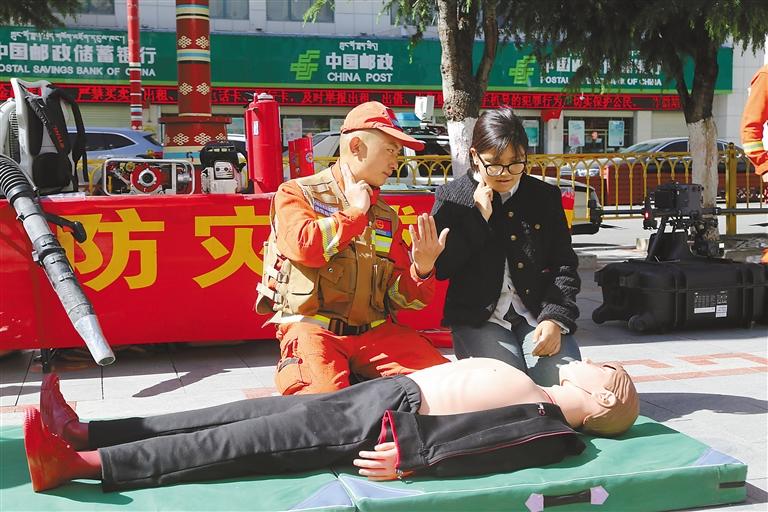 此外,西藏森林消防總隊還派出多支執勤分隊,走進全區各地街道、社區、商鋪,通過設置救援裝備展示區、消防知識宣傳點、發放防災減災知識手冊、贈送消防宣傳文創產品等方式為廣大群眾講解防災避險基本常識及應急自救知識。期間,執勤隊員還在宣傳點現場組織安全知識有獎競答,通過答題可獲得紙巾、水杯、袋子等消防文創紀念品,大大提升了群眾共同參與防災減災宣傳的積極性,從社會面營造“人人講安全、個個會應急”的良好氛圍。