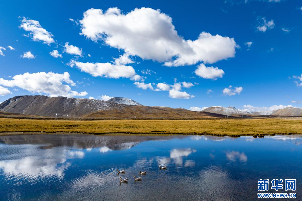 10月6日,在西藏自治區那曲市嘉黎縣境內拍攝的斑頭雁。新華網 旦增努布 攝