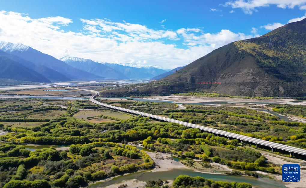 這是在林芝雅尼國家濕地公園尼洋河畔拍攝的生態監測系統(10月24日攝,無人機照片)。新華社記者 劉天宇 攝
