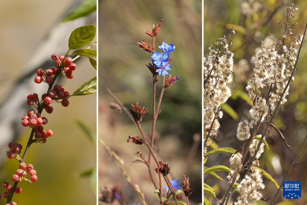 這是10月24日在西藏林芝雅尼國家濕地公園內拍攝的植物(拼版照片)。新華社記者 李賀 攝