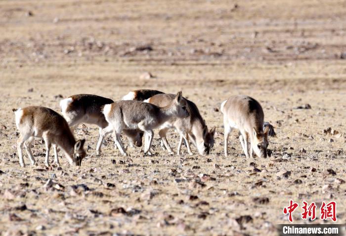 圖為12月5日,西藏那曲市申扎縣境內的中國國家二級保護動物藏原羚正在覓食。中新社記者 李林 攝