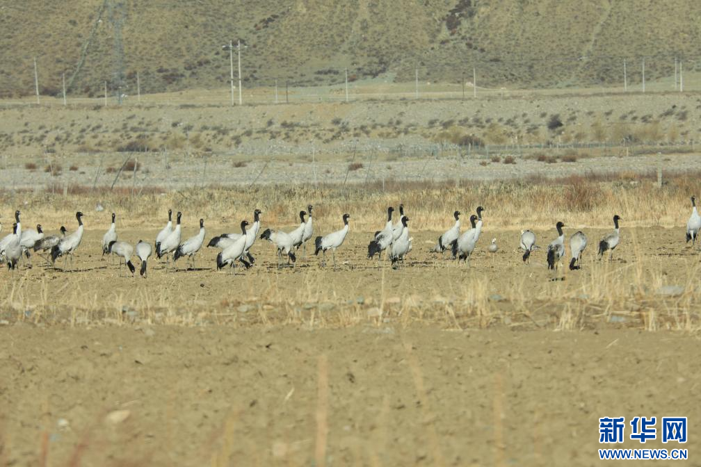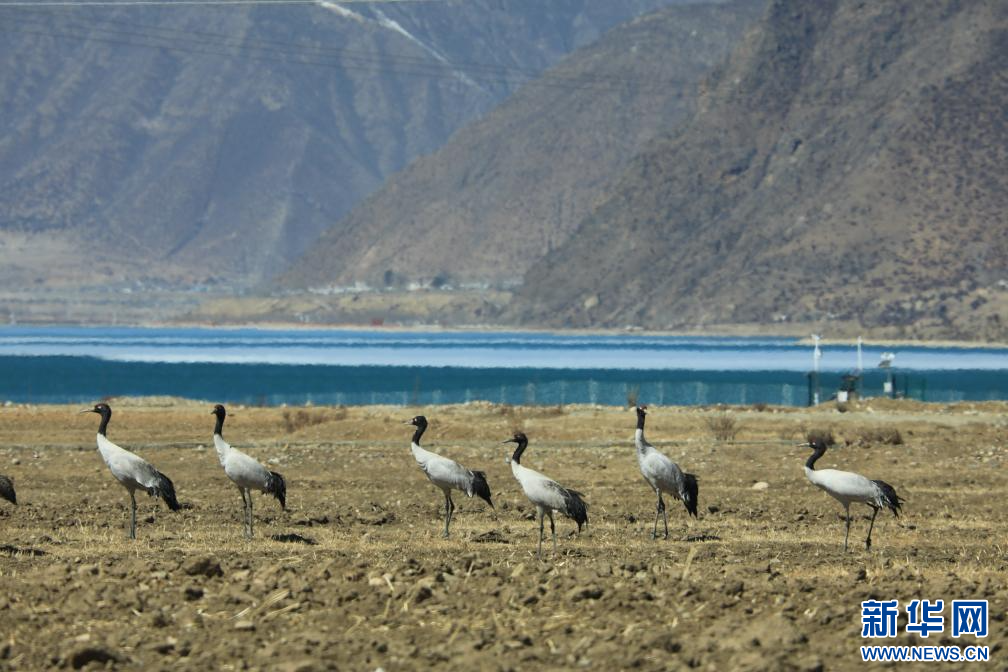 3月4月,在西藏墨竹工卡縣境內拍攝的黑頸鶴。新華網發 洛克 攝