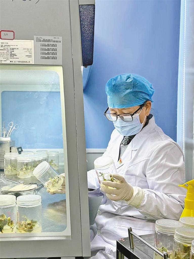 許多植物都有藥用價值,為了減少對野生植物的依賴,避免野外過度采集破壞生態,2014年,尼珍團隊成功繁育毛蓮蒿,并且將組培技術轉讓給相關企業,還為企業培訓了轉接人員,不僅保護了植物資源,也提高了企業增產能力。