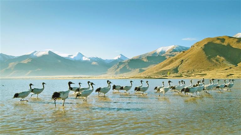 黑頸鶴作為高原上的珍稀鳥類,是拉薩與林周生態(tài)環(huán)境中的重要組成部分。它們優(yōu)美的身姿和悠揚的叫聲,成為這片土地上不可或缺的生態(tài)符號。中國野生動物保護協(xié)會科學(xué)考察委員會副主任委員、北京林業(yè)大學(xué)博士研究生導(dǎo)師李連成說:“拉薩地區(qū)作為黑頸鶴重要的越冬地,得到了當?shù)卣块T和社會各界的高度重視,黑頸鶴越冬種群數(shù)量不斷增加,活動區(qū)域不斷擴大。2022年的調(diào)查數(shù)據(jù)顯示,拉薩地區(qū)的黑頸鶴越冬種群數(shù)量約為3375只,其中林周縣有2938只。目前,新一輪針對林周縣黑頸鶴越冬種群數(shù)量的調(diào)查工作正積極推進中?!?/p>