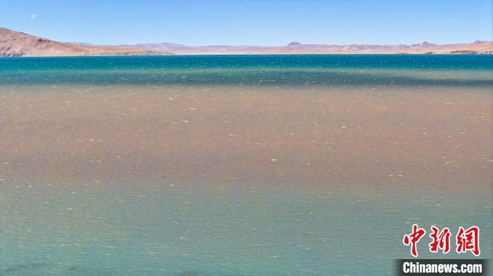 3月27日,航拍西藏自治區那曲市安多縣錯那湖,湖水交匯處好似“鴛鴦火鍋”。錯那湖是怒江的源頭湖,海拔4600米左右,是世界上海拔最高的淡水湖,也是青藏鐵路沿線著名景點之一。(無人機照片)中新社記者 馬銘言 攝
