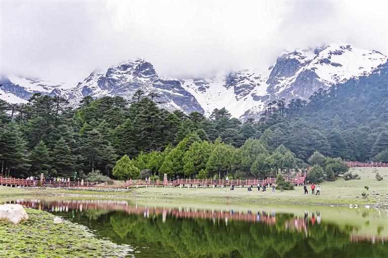 讓榮湖像是被雪山捧在手心的一面鏡子,沿湖漫步,側身回眸、定格——湖面倒映著雪峰與流云,清冷感溢出屏幕。