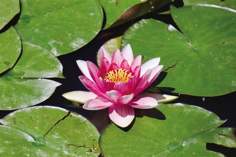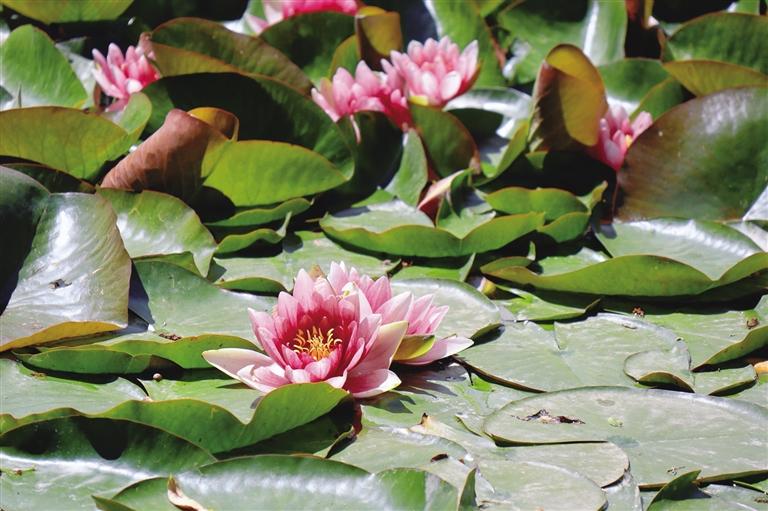 “移舟水濺差差綠,倚欄風搖柄柄香?!弊哌M柳梧國際總部城院內,在停車場的東側,一池蓮花在層層蓮葉的襯托下開得正盛。走近池邊,蓮葉特殊的淡淡香味夾雜著潮濕的水汽撲面而來。粉、白的蓮花在幾場雨過后,迎著陽光依次綻放。幾個孩子在池邊嬉戲追逐,時不時用手挑起水花四濺,遠遠看去,頗有“小姑貪戲采蓮遲”的意味。