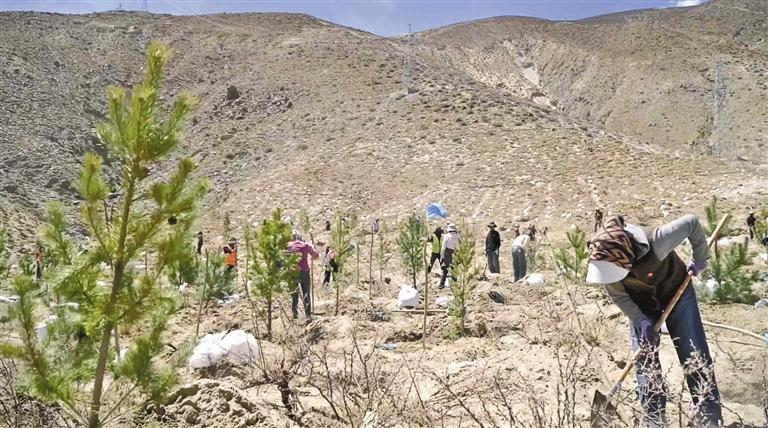 圖為六月八日,南北山綠化工程桑日段植樹現場。 通訊員 阿旺金巴 攝