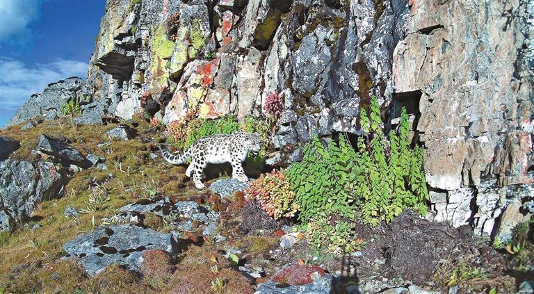 在乃朗谷拍攝到的雪豹。圖片由乃朗生態文化保護中心提供