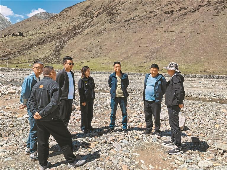 圖為山南市生態(tài)環(huán)境局執(zhí)法人員在砂石場檢查。記者 巴桑旺姆 攝