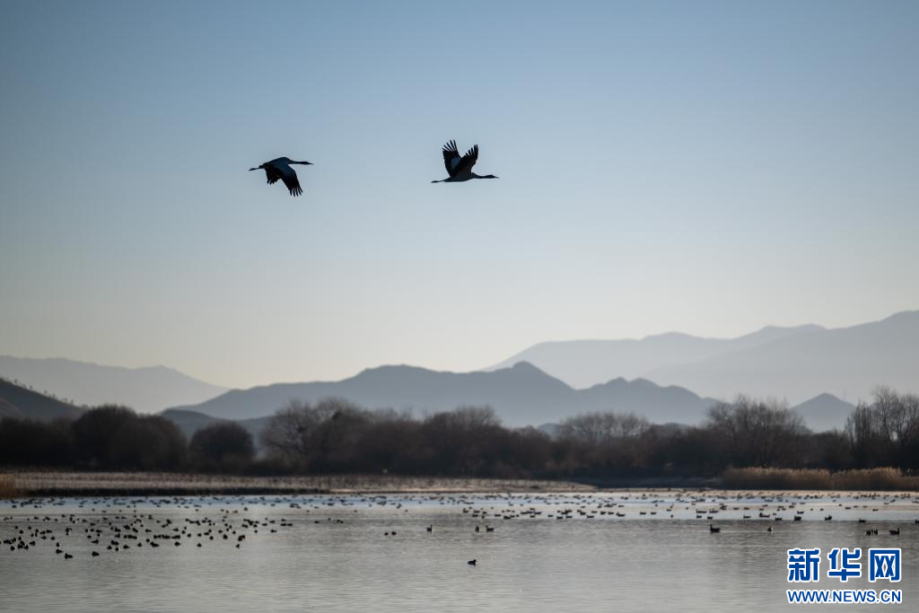 12月18日,在西藏日喀則市南木林縣境內(nèi)拍攝的黑頸鶴。新華網(wǎng) 旦增努布 攝
