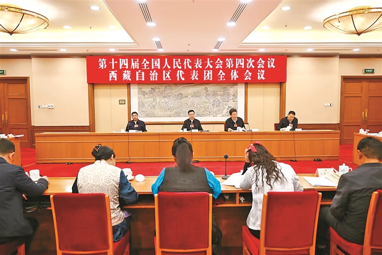 3月8日,西藏代表團舉行全體會議,審議生態環境法典草案、民族團結進步促進法草案、國家發展規劃法草案。