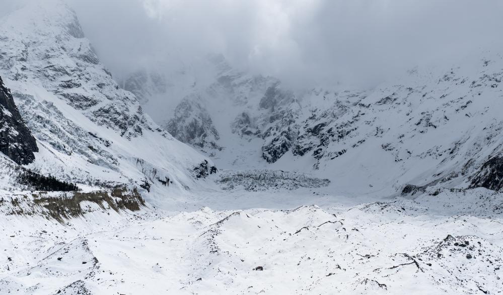 相較之下,白普隆溝的春天要來得晚一些,這里是“谷中之谷”,谷外山花盛開時(shí),這里的風(fēng)雪似乎還在奏著冬的尾調(diào)。