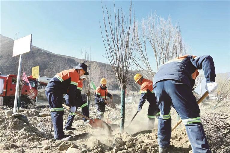 為持續筑牢高原生態安全屏障,近日,拉薩市墨竹工卡縣開展全民義務植樹活動。本次活動以“植綠護綠筑屏障,共建美麗墨竹”為主題,墨竹工卡縣50家縣直部門和礦山企業參與,500余名干部職工攜手并肩、共植新綠。