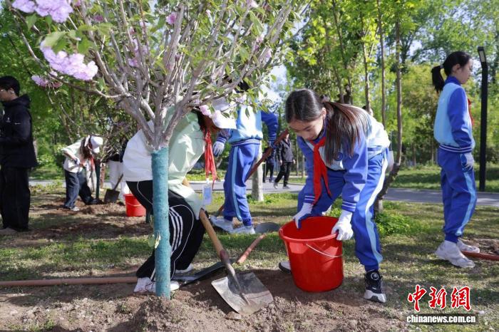 圖為活動現場,來自北京和西藏的青少年共同參與植樹活動。(中國宋慶齡青少年科技文化交流中心 供圖)