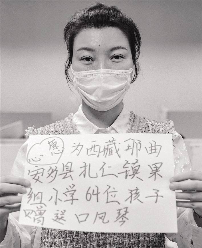 3月6日,為了讓奮戰在抗疫一線的英雄感受到社會的敬意,阿里巴巴天天正能量聯合全國媒體發起了“共圓英雄夢”活動。記者詢問柏雪有什么心愿,她說:“我想給西藏那曲市安多縣扎仁鎮果組小學的64名孩子送口風琴!”