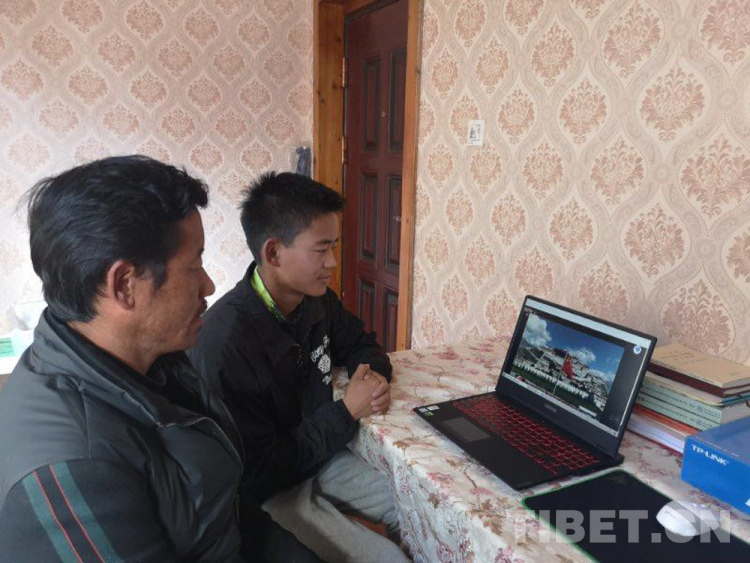 圖為學生和家長在家中通過網(wǎng)絡(luò)共同參與紀念活動 圖片由拉薩中學提供