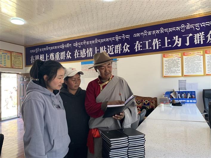 圖為察隅縣古玉鄉古井村黨支部書記羅布扎西在給村里的“雙聯戶”黨員講解如何做黨員筆記。西藏日報記者 張猛 本報通訊員 魯茸七林 攝
