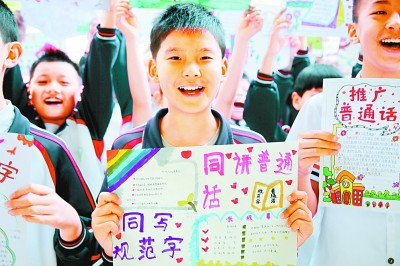 9月17日,河南靈寶市解放小學學生用手抄報形式宣傳推廣普通話。劉曉偉攝/光明圖片