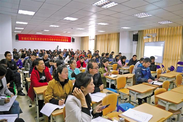 圖為在拉薩北京實驗中學舉辦的與北京某優質學校網絡遠程教研活動現場。王莉 攝