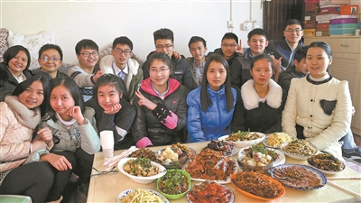 2017年春節,考上大學的部分受助學生返鄉,和張彥杰、李友生夫婦(第二排左一、二)一起過年。