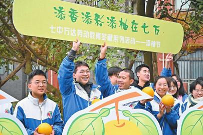 12月4日,成都七中萬達學校首屆“添柚節”開幕。“添柚節”覆蓋了多個年級,設置了多項活動,并融入學科元素,如初一年級結合生物和美術學科,或用柚子做小零食進行義賣,或在柚子上繪出不同的圖案;初二年級則結合地理和美術學科,描繪出一幅幅中國的“水果”地圖;高三年級的學生摘下柚子與老師一同品嘗豐收的味道。