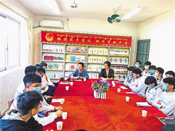西藏青年報社副社長洛桑頓珠、內地西藏班(校)管理中心工作人員廖羨等,同內地西藏班的各族師生代表進行座談。