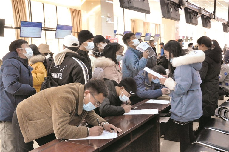 12月15日上午,拉薩市2020年最后一場現場招聘會在市人力資源市場舉行。圖為求職者在填寫求職簡歷。拉薩融媒記者 齊永昌攝