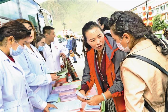 圖為山南市疾病預防控制中心工作人員在今年雅礱文化節(jié)期間,面向市民開展健康知識宣傳。段敏 攝