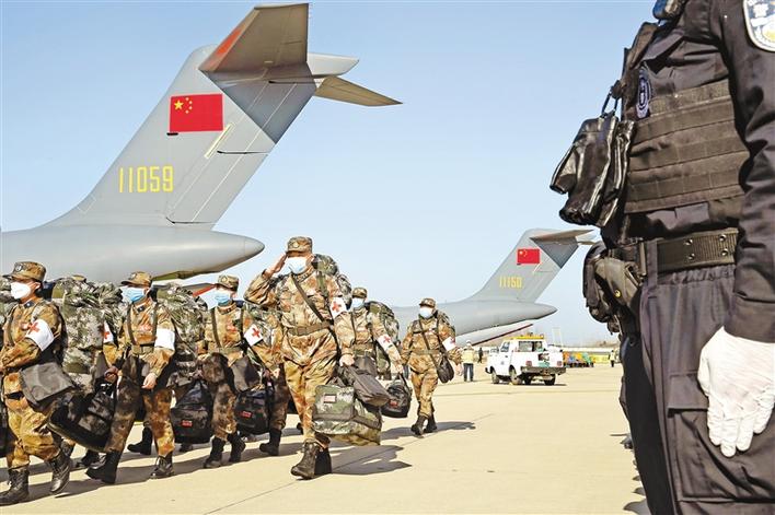 2月17日,軍隊支援湖北醫療隊員抵達武漢天河機場。新華社記者 黎云 攝