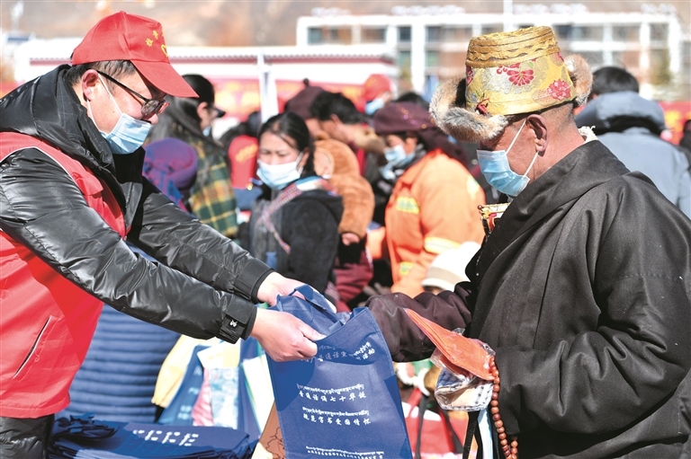 隨著春節(jié)、藏歷新年腳步越來越近,熱熱鬧鬧的年味越來越濃。2月1日,由拉薩市委宣傳部牽頭,市文聯(lián)、市教育局、市司法局、市衛(wèi)健委等16家單位走進墨竹工卡縣新時代文明實踐中心,開展文化科技衛(wèi)生法律愛國愛教服務“五下鄉(xiāng)”活動,為當?shù)厝罕娝蜕闲履甓Y物。