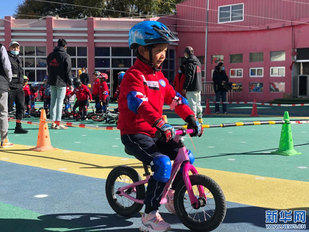 拉薩市實驗幼兒園的孩子正在學習騎滑步車(2020年11月17日攝)。 新華社記者 金一清 攝