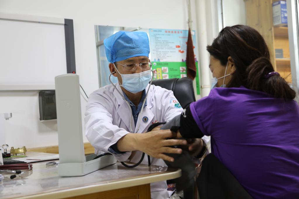 在瑪曲縣人民醫院,王團勝為患者看病。新華社記者 馬莎 攝