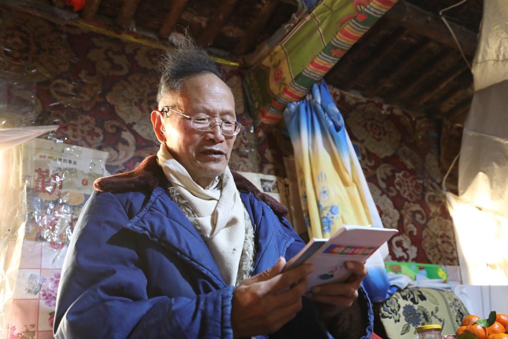 王萬青在家中閱讀書籍。新華社記者 馬莎 攝