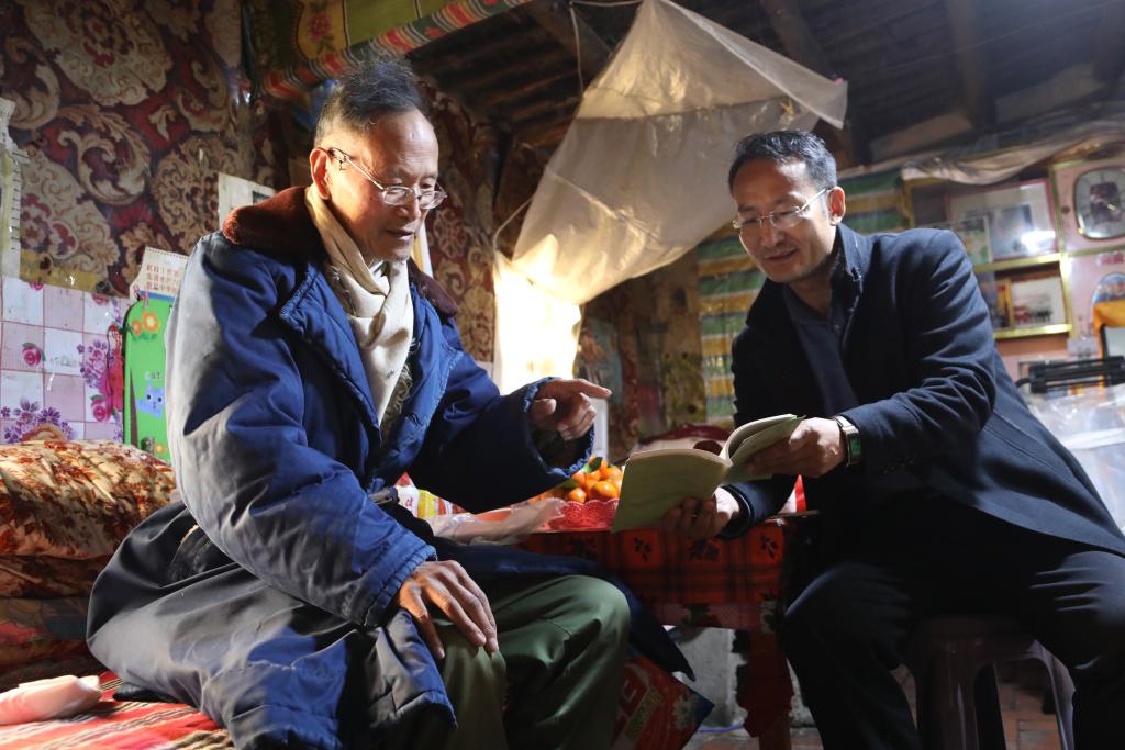 王萬青與王團勝在家中聊天。新華社 馬莎 攝