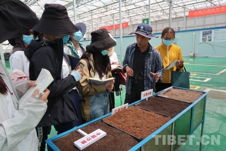 圖為綠亞生態的工作人員給同學們講解沙棘種子的選育