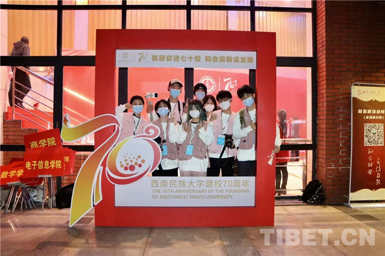 圖為西南民族大學學生慶祝母校建校70周年