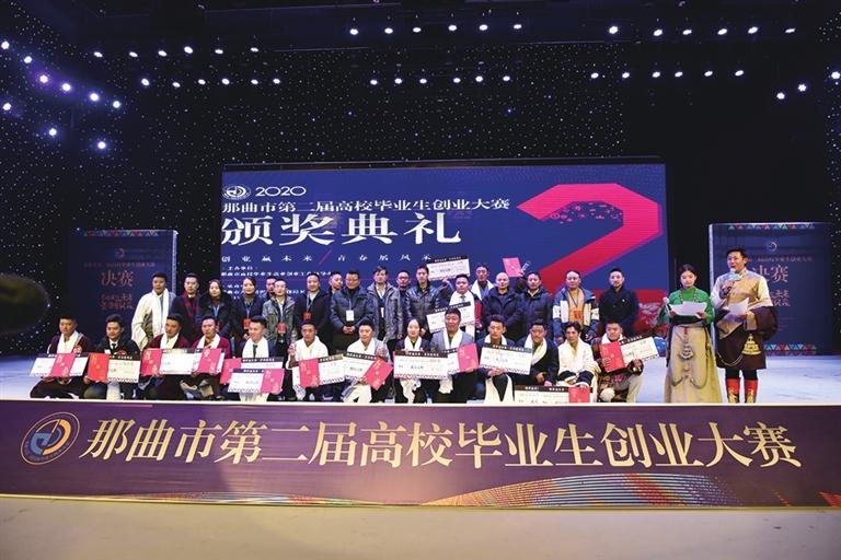 圖為那曲市第二屆高校畢業(yè)生創(chuàng)業(yè)大賽頒獎現(xiàn)場。